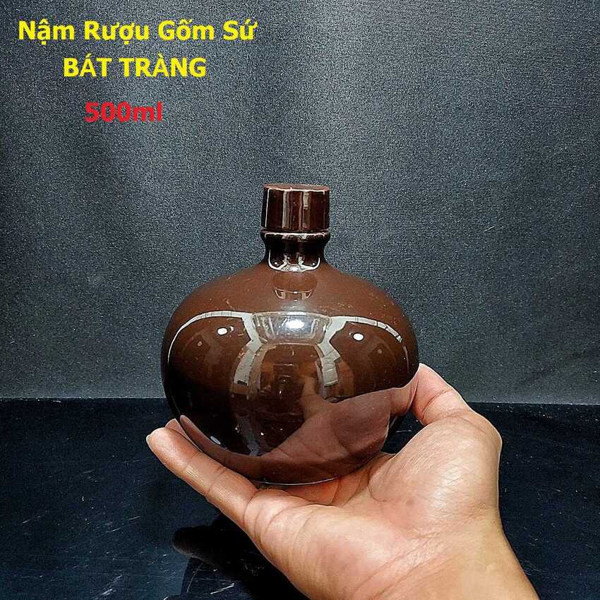 Nậm Rượu 500ML gốm men sứ Bát Tràng cao cấp – Mẫu Bầu Tròn màu Nâu Đỏ – Nậm Đựng Rượu chất lượng đảm bảo