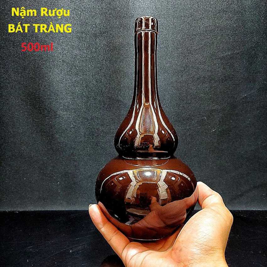 Nậm Rượu Bát Tràng 500ML gốm men sứ cao cấp – Mẫu Hồ Lô cao màu Nâu Đỏ - Nậm Rượu Đẹp cho giới sành tửu – Nậm Rượu 500ML chất lượng đảm bảo – Nậm Đựng RượuCeramic Bottle 500ML - Bat Trang brand – Gourd shape – Reddish Brown color - Premium quality – 1 bottle