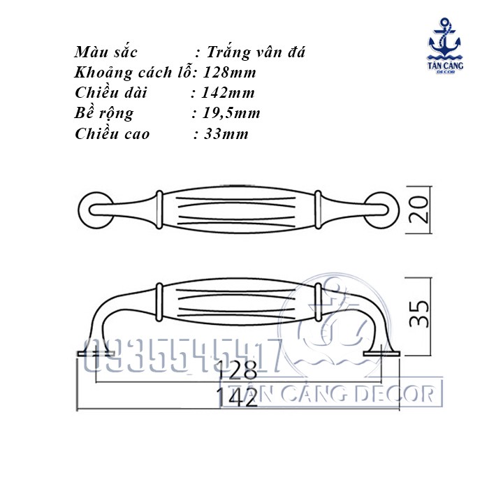Giới thiệu Tay Nắm Sứ Cổ Điển 36 - KT : 14.2cm (cái)