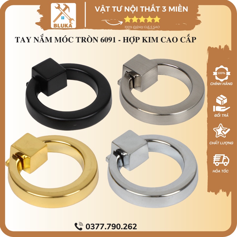 Tay Nắm Tủ Gỗ Cửa Khoen Móc Tròn Hợp Kim, Tay Kéo Tủ Quần Áo Tay Cầm Tủ Bếp 6091 BLUKA