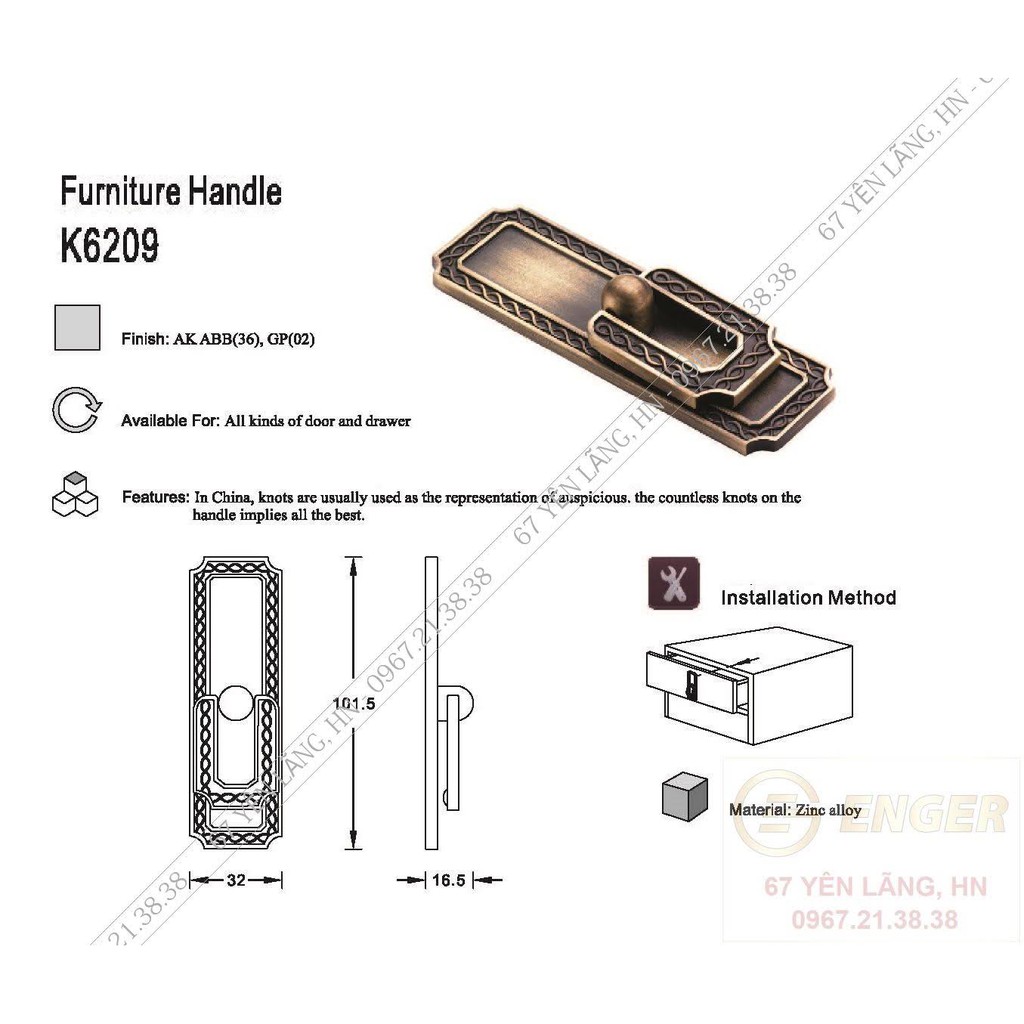 Giới thiệu Tay nắm tủ, Tay co tủ nội thất tân cổ điển AK6209