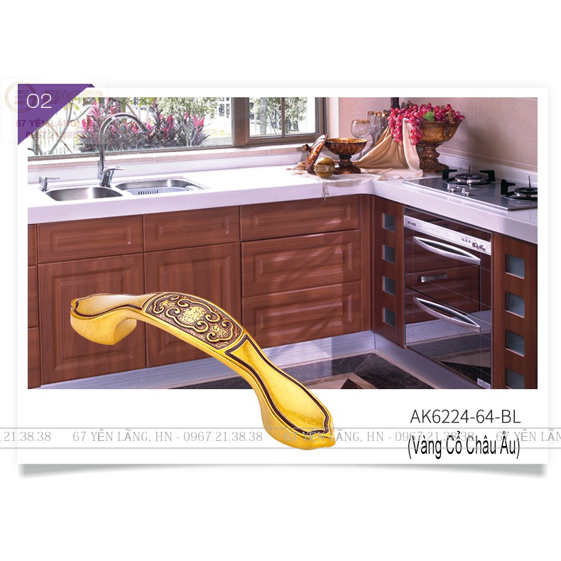 Tay nắm tủ, Tay co tủ nội thất tủ bếp, tủ áo, ngăn kéo phong cách hiện đại, tân cổ điển AK6224 AK6225Màu sắc hoàn thiện: Trắng Sứ/Vàng (BB), Vàng K (02) , Vàng Cổ (BL)