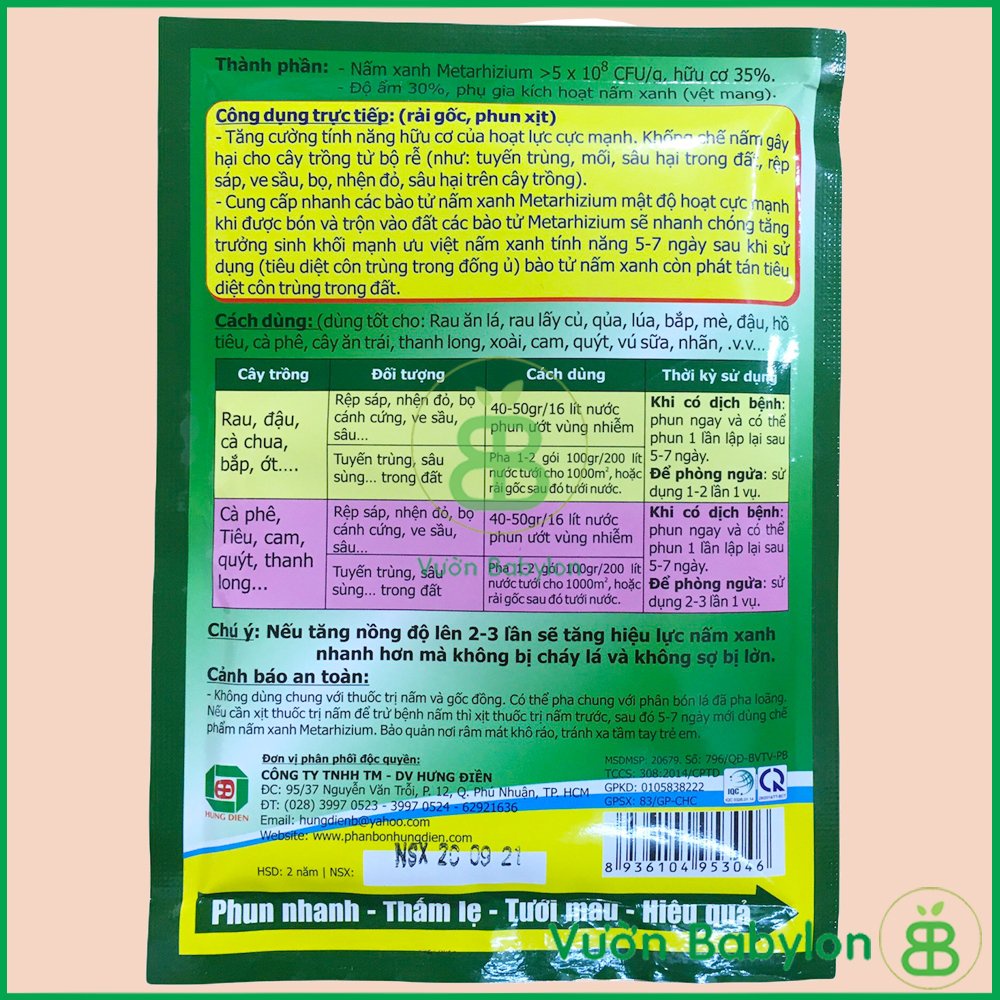Vườn Babylon Xin Kính Chào Qúy Khách!Chế phẩm Vi Sinh Phòng Sâu, Nhện Đỏ, Bọ Trĩ, Sùng Đất Sinh Học NẤM XANH