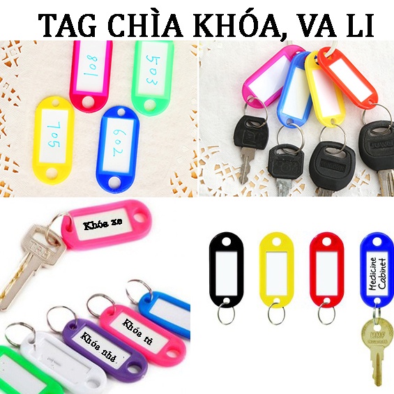 Name tag vali - thẻ ghi chú, ghi nhớ móc chìa khóa đa năng, thẻ đeo đánh dấu bảng tên cho học sinh, nhân viênSản phẩm có thiết kế đơn giản với nhiều màu sắc, đặc biệt có khoen tiện lợi giúp bạn dễ dàng nhận biết các loại khó.a cửa, khó.a tủ,..., Còn sử dụng để viết tê.n và số điện thoại vào chùm chì a khó.a hoặc hành lý tránh thất lạc.