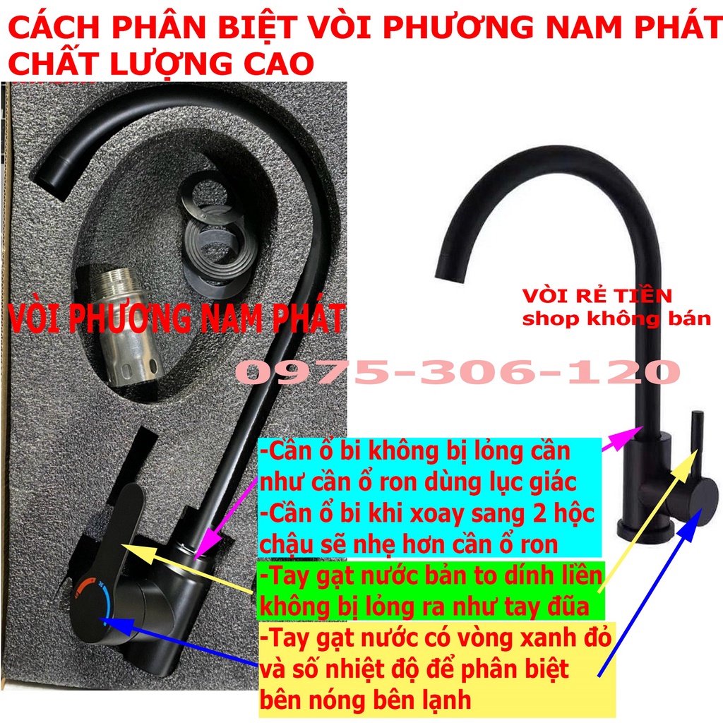 Vòi Rửa Chén Bát Nóng Lạnh INOX 304 N4003 Quay 360 độ+Cổ vòi ổ bi bên trong có viên bi nên khi xoay trái phải không bị lỏng cần xoay nhẹ dễ dàng, nắp chụp giữ cần chắc chắn, giờ khách hay dùng loại cải tiến này tốt hơn loại ổ ren cao su
