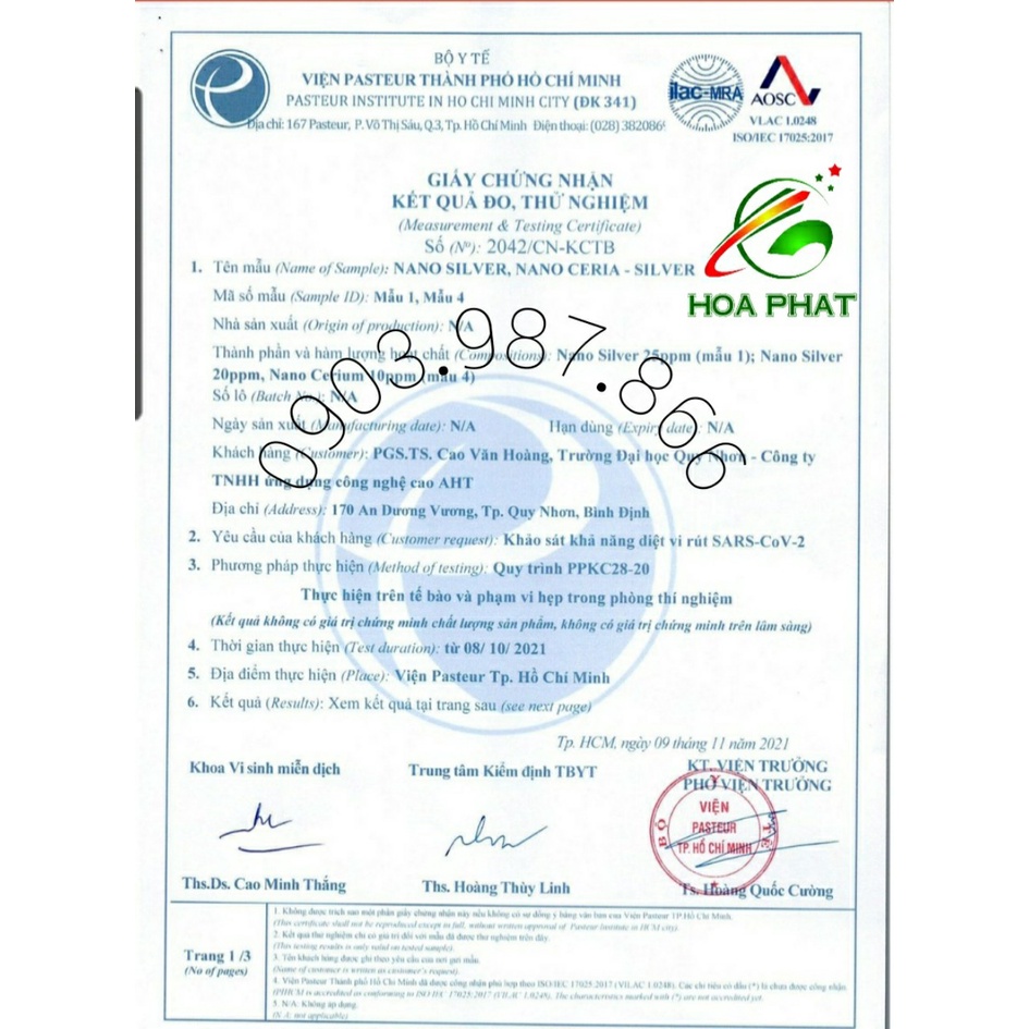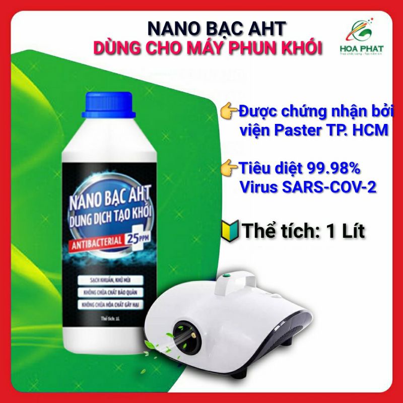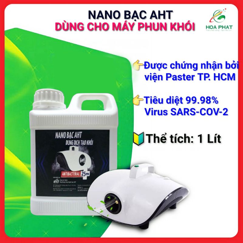 Nano bạc tạo khói, diệt kh uẩn, khử mùi AHT 1 lít - Khử mùi, khử kh uẩn hiệu quảSản phẩm Nano bạc tạo khói AHT an toàn cho con người và môi trường với kết quả được thẩm định bởi sở y tế TP HCM