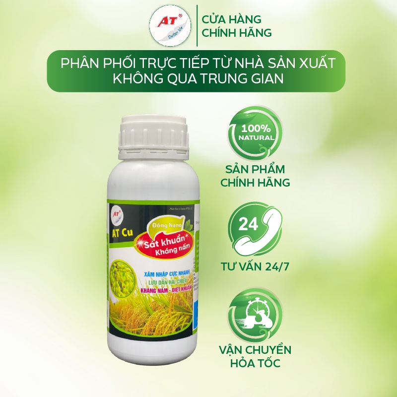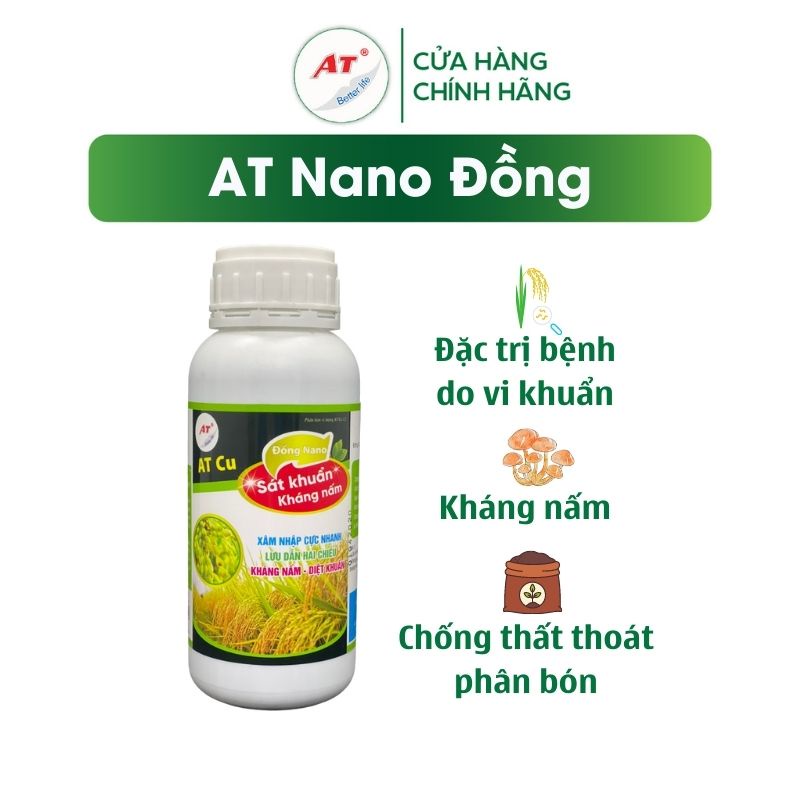 Nano Đồng diệt khuẩn AT Chống bạc lá, đốm sọc, khô vằn, sọc đen vi khuẩn chuyên lúa – AT Nano đồng 500mlThông tin của AT Nano Đồng đậm đặc 500ml.