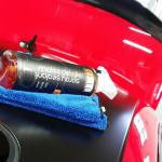- Gấp 4 khăn microfiber chuẩn (40x40cm) lại và xịt dung dịch quick detailer trực tiếp lên sản phẩm hoặc xịt lên khăn microfiber