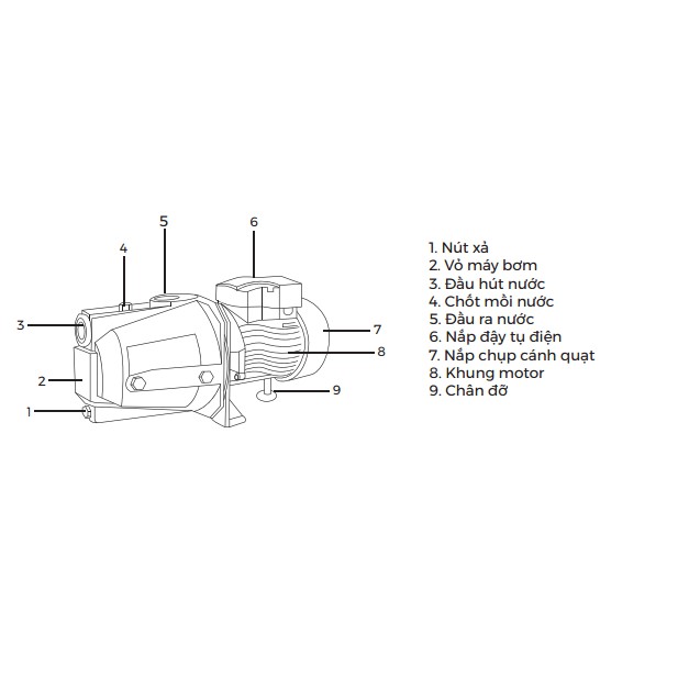 - Chiều hút sâu 8m-Độ cao hút đẩy tối đa:40m