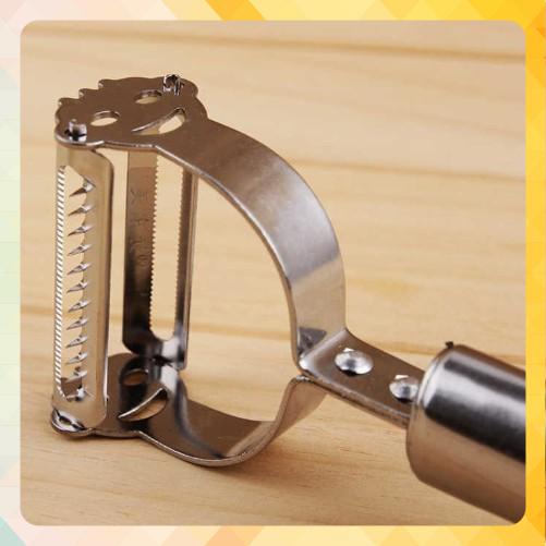 💢Sản phẩm tích hợp 2 lưỡi chính để gọt (nạo) của quả và cắt (bào) củ quả thành sợi; Tay cầm bằng thép Inox 430, không gỉ, siêu bền, dễ cầm, có móc treo;