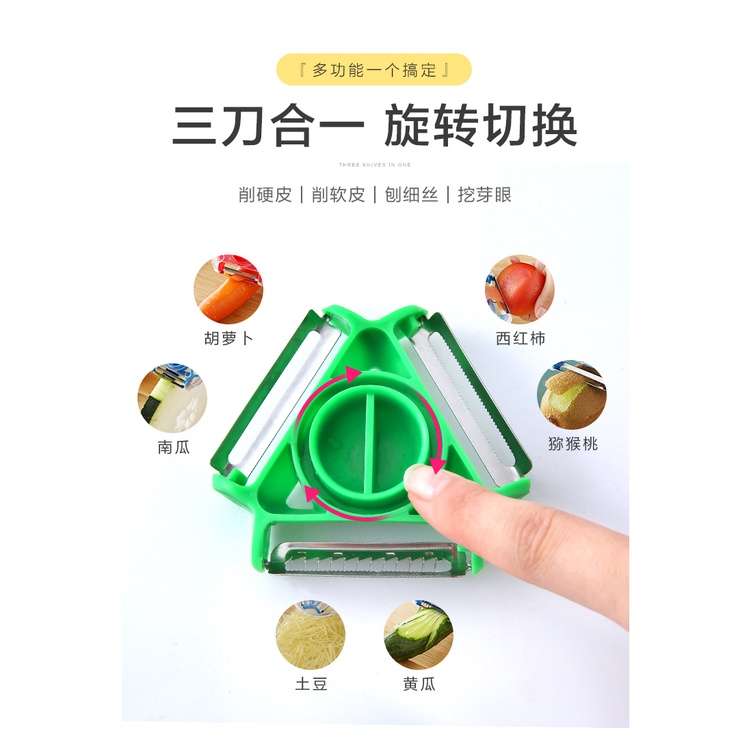 Nạo Bào Vỏ Đa Năng 3 Lưỡi Trong 1 Xoay Để Đổi Lưỡi Dao