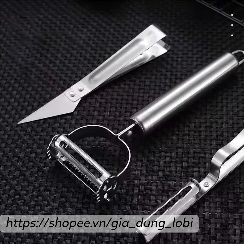 Bộ nạo củ quả đa năng 3 chi tiết bằng inox nạo vỏ bào sợi