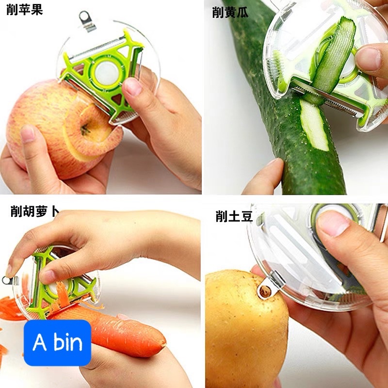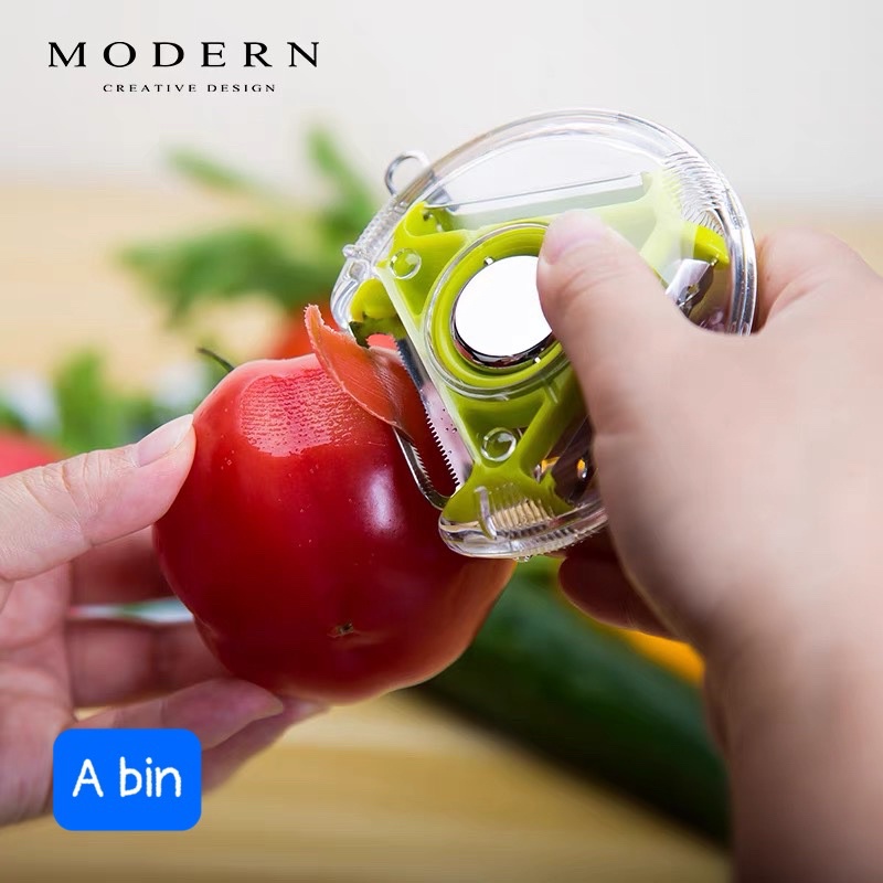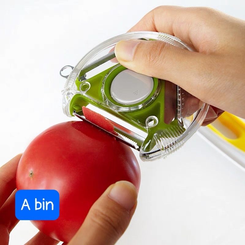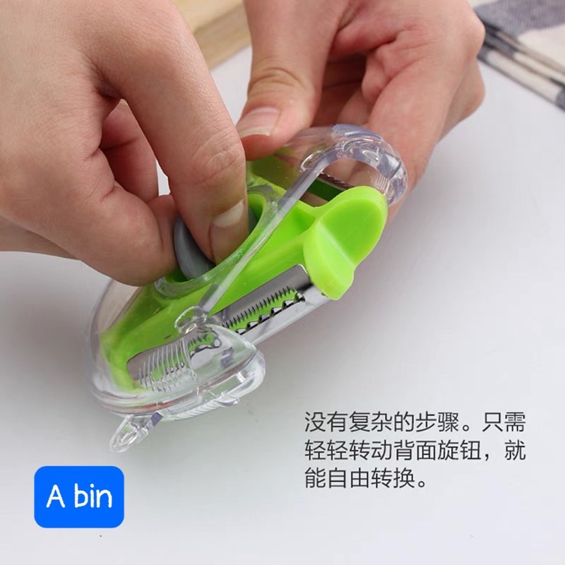 ✯ Nạo gọt rau củ quả được thiết kế thông minh, hình tròn, có nút xoay. Khi đang nạo vỏ, muốn chuyển sang bào sợi bạn chỉ cần xoay nút vặn, rất tiện dụng. Có 3 chế độ gọt cho bạn. Ngoài ra, hai bên có nút nhỏ để nạo mắt khoai tây.