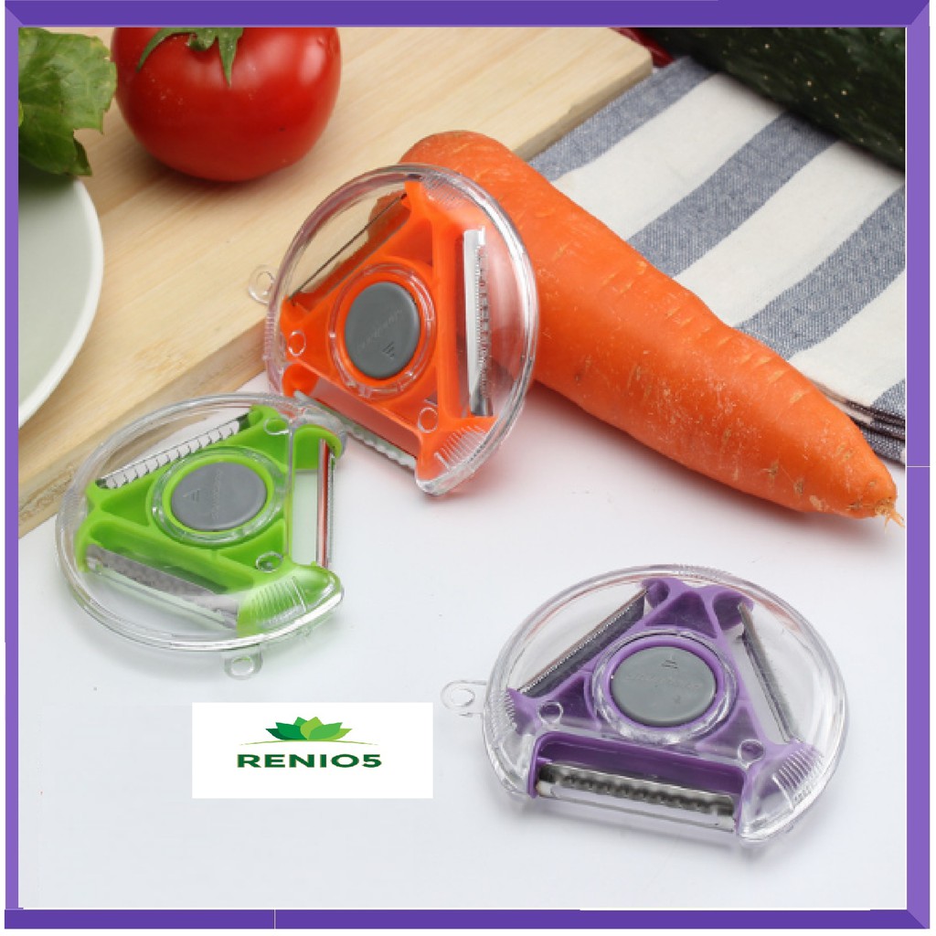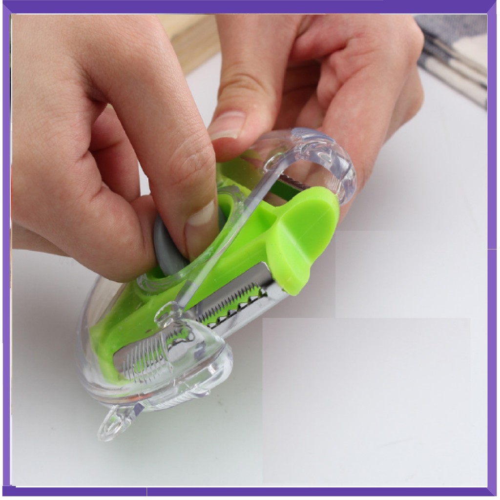 Dụng cụ tiết kiệm thời gian cho chị em nội trợ với thiết kế khoa học dùng để gọt vỏ ,thái sợi,đục lỗ lại nhỏ gọn dễ vệ sinh,tránh rủi ro khi gọt bằng dao