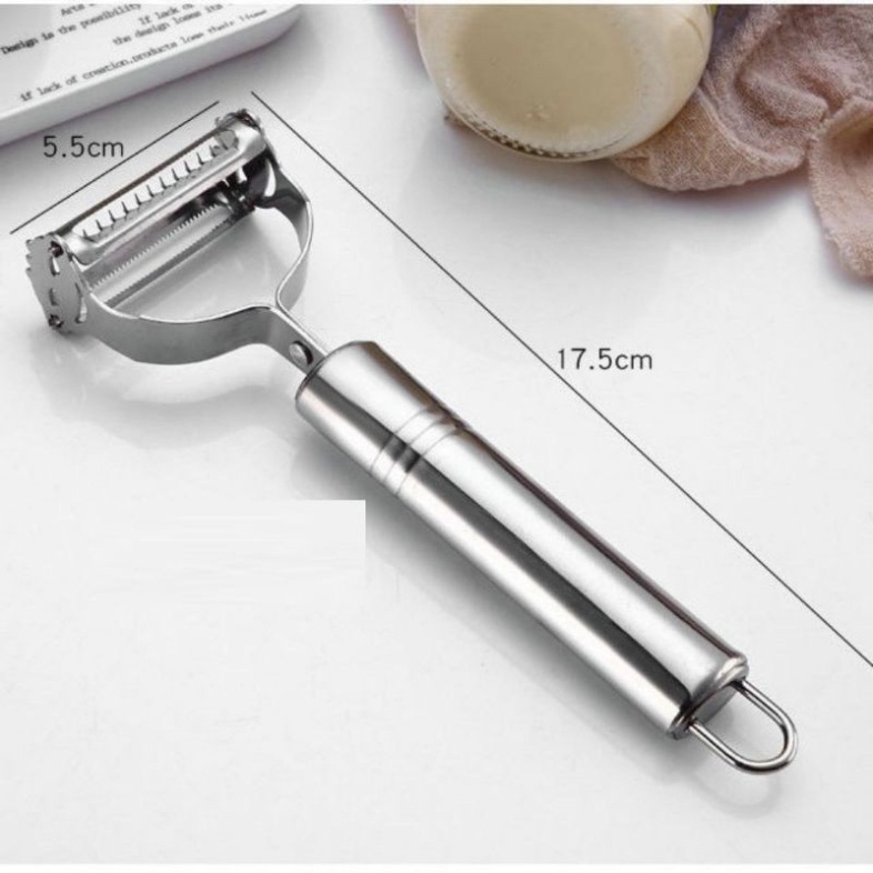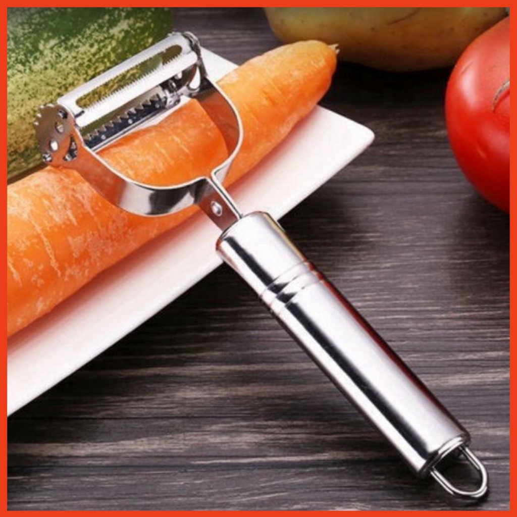 - Nạo gọt rau củ quả inox 2 đầu đa năng dành cho gia đình 1 đầu gọt vỏ - 1 đầu nạo sợi gọt sắc đa năng inox dùng siêu bền.