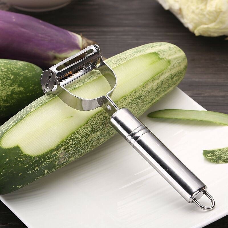 - Nạo gọt rau củ quả inox 2 đầu đa năng dành cho gia đình 1 đầu gọt vỏ - 1 đầu nạo sợi gọt sắc đa năng inox dùng siêu bền.