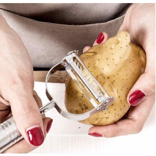 - Nạo rau củ đa năng có thể thay thế hoàn toàn các dụng cụ cắt thái rau củ quả thông thường.