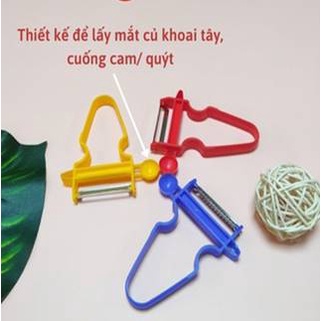 - Ở trên mỗi dao gọt, có thiết kế sẵn dụng cụ lấy mắt củ khoai tây hoặc cuống quả cam/quýt.