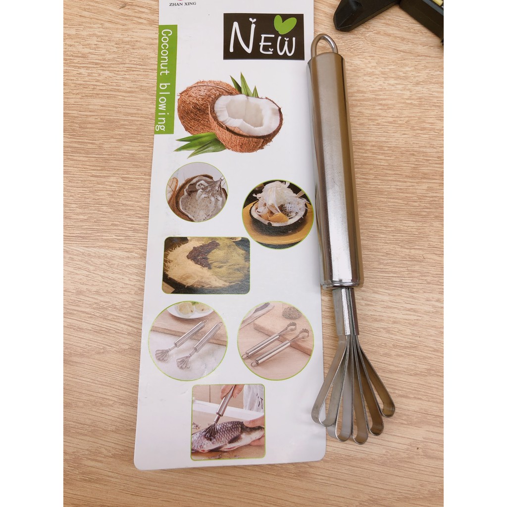 Nhà cửa & Đời sống > Dụng cụ nhà bếp > Phới đánh trứng || cây nạo dừa và đánh vảy cá tay cầm thép ( 1 cái )Còn hàng