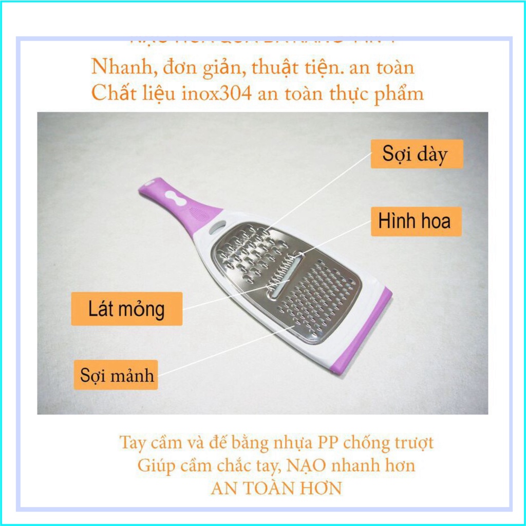 -Và sản phẩm nạo hoa quả có đến 4 chức năng cho chị em có thể thoải mái lựa chọn kiểu gọt , nạo , lát mỏng để trang trí cho bữa ăn thêm phần bắt mắt
