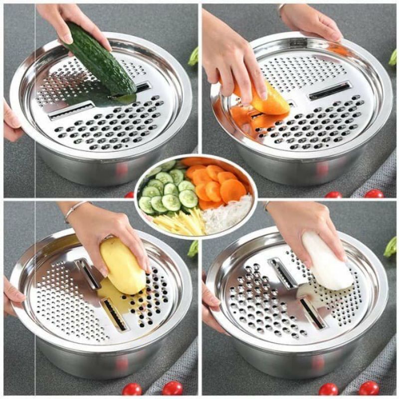 Rổ bào inox có chậu, Mâm nạo củ quả tiện lợi 3 trong 1