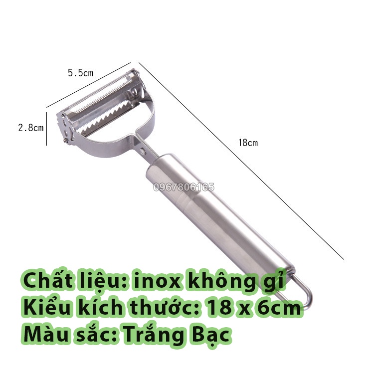 Nạo gọt rau củ quả inox 2 đầu đa năng dành cho gia đình 1 đầu gọt vỏ - 1 đầu nạo sợi gọt sắc đa năng inox dùng siêu bền. Dụng cụ bào nạo - gọt củ quả đa năng thiết kế thông minh, nhiều chức năng: Gọt (nạo) vỏ củ quả, bào củ quả thành sợt nhỏ rất nhanh và an toàn… giúp việc chế biến các món ăn thật đơn giản và dễ dàng.