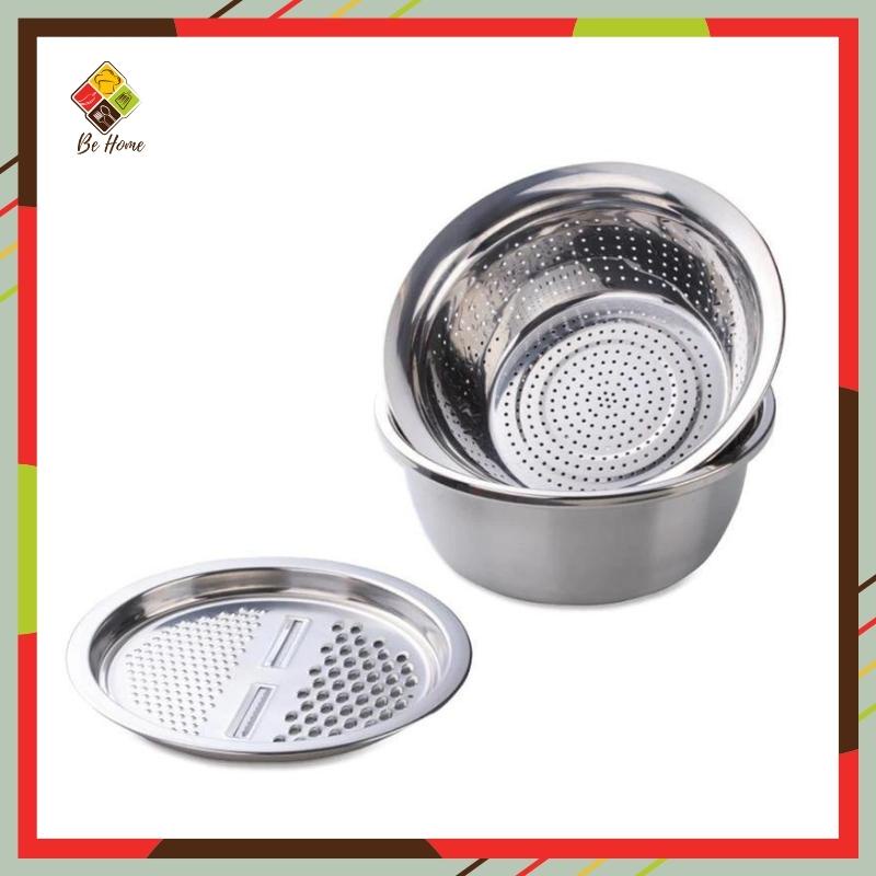 Nhà cửa & Đời sống > Dụng cụ nhà bếp > Bàn nạo, dụng cụ bào, cắt || Bộ nạo rau củ 3 món bào BEHOME Rổ nạo rau củ kiêm rổ và chậu inox cao cấp đa năng tiện lợi dùng nhà bếpCòn hàng