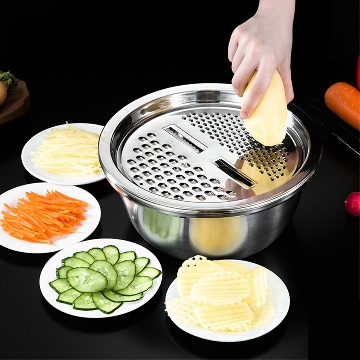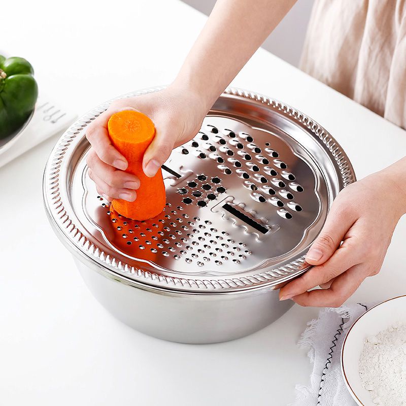 Nhà cửa & Đời sống > Dụng cụ nhà bếp > Bàn nạo, dụng cụ bào, cắt || Bộ Nạo Rau Củ 3 Món Bào Nhật Bản - Rổ Nạo Rau Củ Kiêm Rổ & Chậu Inox Cao Cấp Đa Năng, Tiện Dụng Nhà BếpCòn hàng