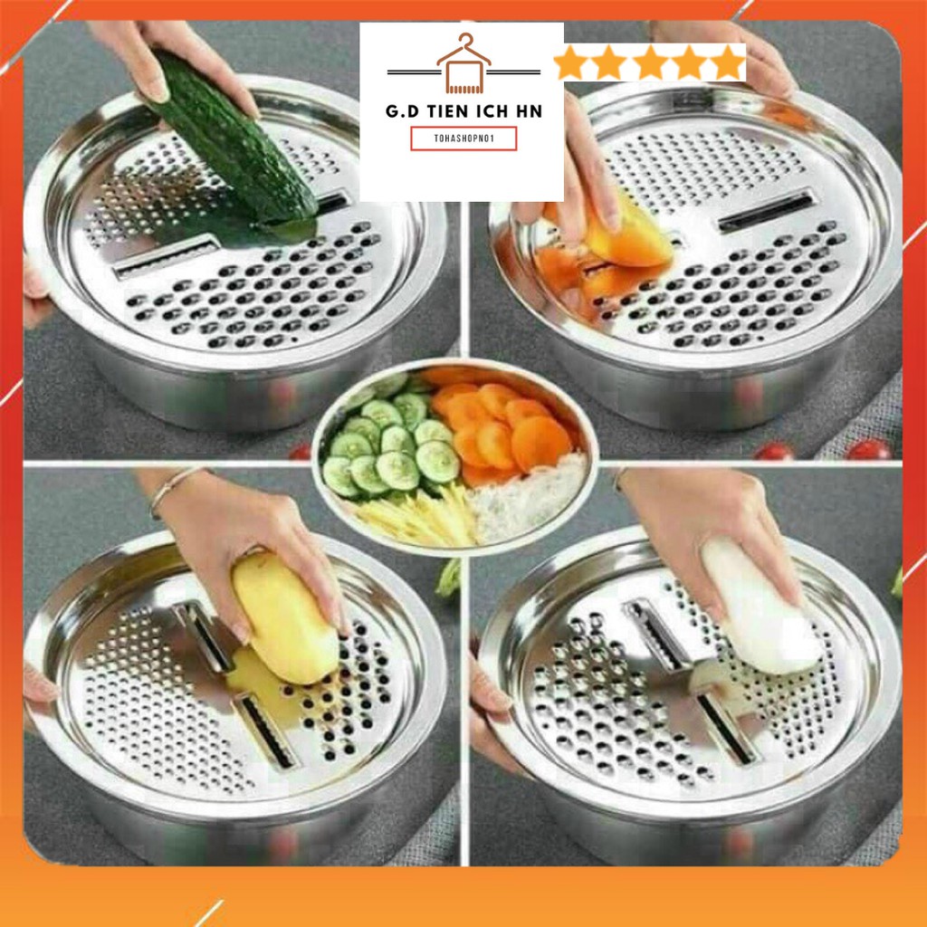 Nhà cửa & Đời sống > Dụng cụ nhà bếp > Bàn nạo, dụng cụ bào, cắt || Bộ nạo rau củ 3 món bào Nhật Bản - Rổ nạo rau củ kiêm rổ và chậu inox cao cấp đa năng,tiện lợi dùng nhà bếpCòn hàng