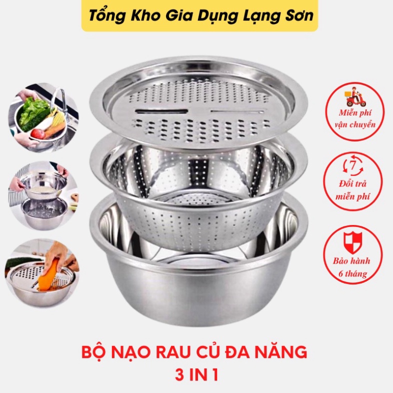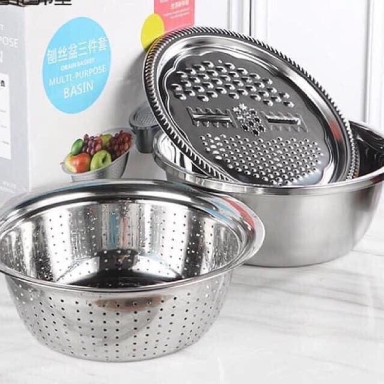 Nhà cửa & Đời sống > Dụng cụ nhà bếp > Bàn nạo, dụng cụ bào, cắt || Bộ Nạo Rau Củ 3 Món Bào Nhật Bản - Rổ Nạo Rau Củ Kiêm Rổ và Chậu Inox Cao cấp Đa Năng, Tiện LợiCòn hàng