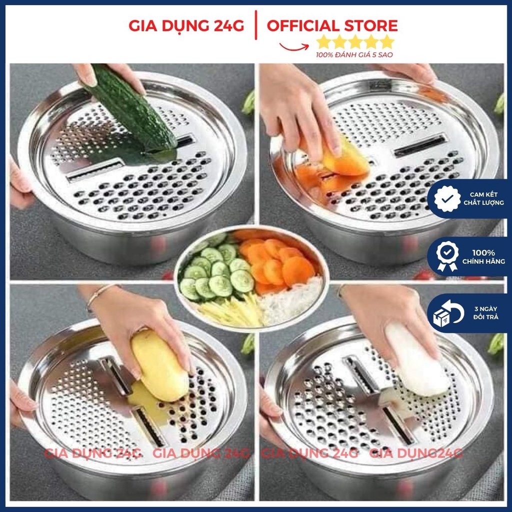 Bộ Nạo Rau Củ 3 Món Bào - Rổ Nạo Rau Củ Kiêm Rổ và Chậu Inox Cao Cấp Đa Năng, Tiện Lợi Dùng Nhà BếpGia Dụng 24G Xin Kính Chào Quý Khách