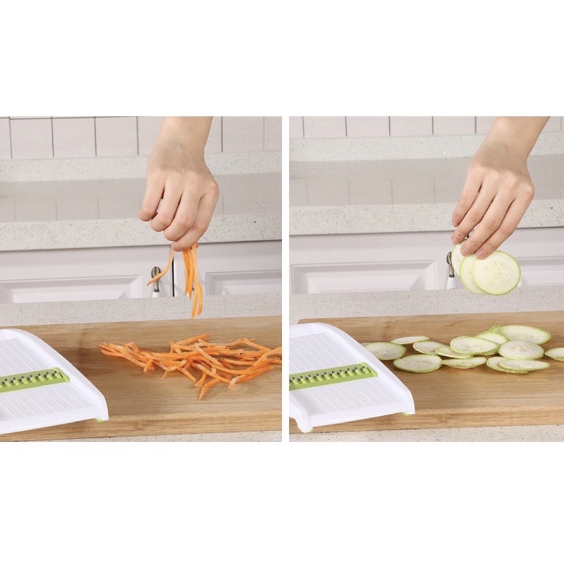 Bộ nạo rau ,củ ,quả đa năng được làm từ hạt nhựa trắng PP nguyên chất không gây độc hại ,lưới cắt được làm từ một loại thép cao cấp chống han gỉ ,bộ gồm 5 chi tiết ,bàn to để tỉa sóng củ quả và để nắp các chi tiết nhỏ để sự dụng công việc nội trợ một cách thuận tiện và dễ dàng hơn .Bộ nạo rau ,củ ,quả đa năng dễ dàng sử dụng ,cho bữa cơm của mọi gia đình thêm đẹp mắt và cảm thấy ngon hơn.