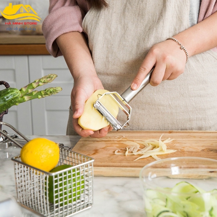 Nạo rau củ đa năng cầm tay bằng inox siêu bền, gọt rau củ đa năng 3 trong 1 tiện lợi - nạo củ quả inox Hà Minh Store