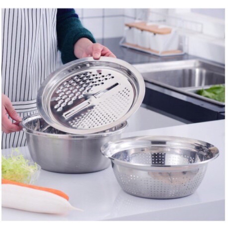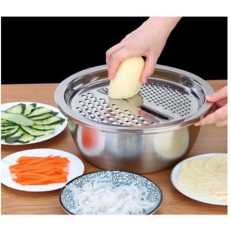 Nhà cửa & Đời sống > Dụng cụ nhà bếp > Bàn nạo, dụng cụ bào, cắt || Bộ nạo rau củ đa năng inox 304, bộ rổ inox kèm nạo rau củ tiện lợiCòn hàng