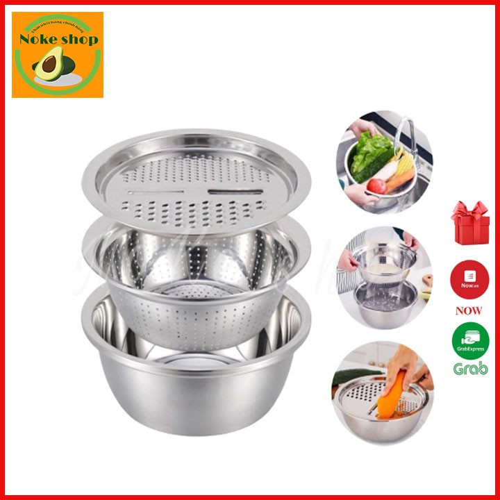 Bộ nạo rau củ đa năng inox 304, bộ rổ inox kèm nạo rau củ tiện lợi