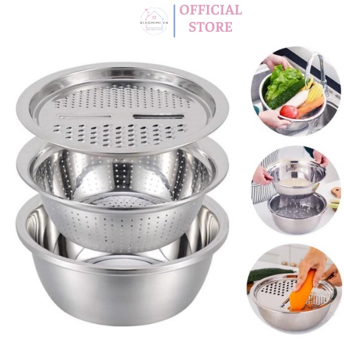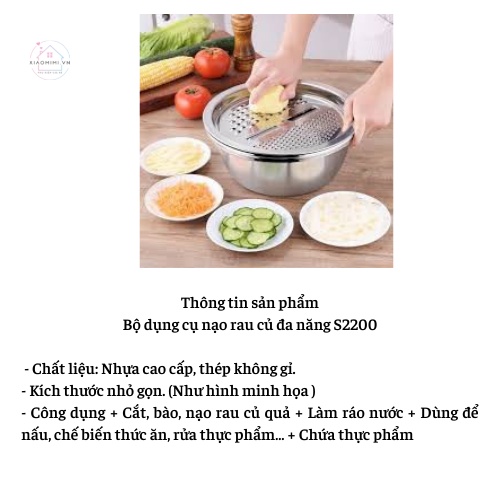 Nạo rau củ đa năng inox nhật bản 3 trong 1 Xiaomimi S2200- Bạn muốn tìm dụng cụ nạo rau củ kiêm rổ và chậu inox cao cấp đa năng,tiện lợi dùng nhà bếp?