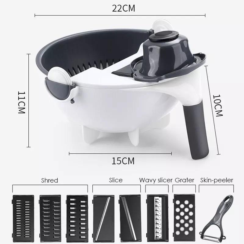 - Bộ dụng cụ nạo rau củ đa năng kèm rổ đựng 9 in 1 tiện dụng. Bạn có thể cắt rau và sau đó làm sạch chúng trực tiếp thông qua một thiết bị thoát nước.