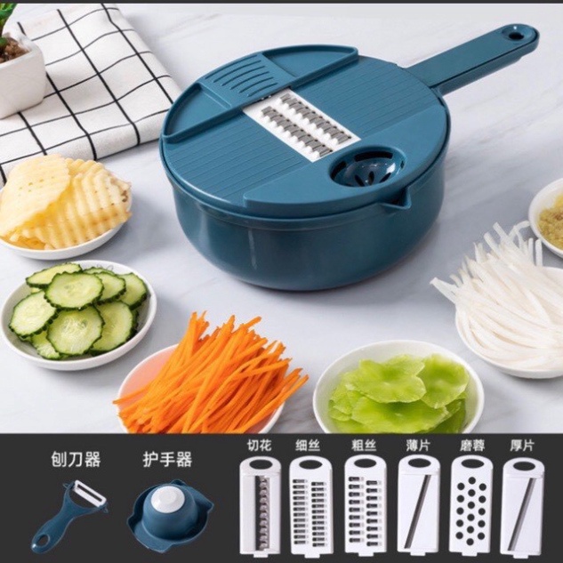 - Bộ dụng cụ nạo rau củ đa năng kèm rổ đựng 9 in 1 tiện dụng. Bạn có thể cắt rau và sau đó làm sạch chúng trực tiếp thông qua một thiết bị thoát nước.