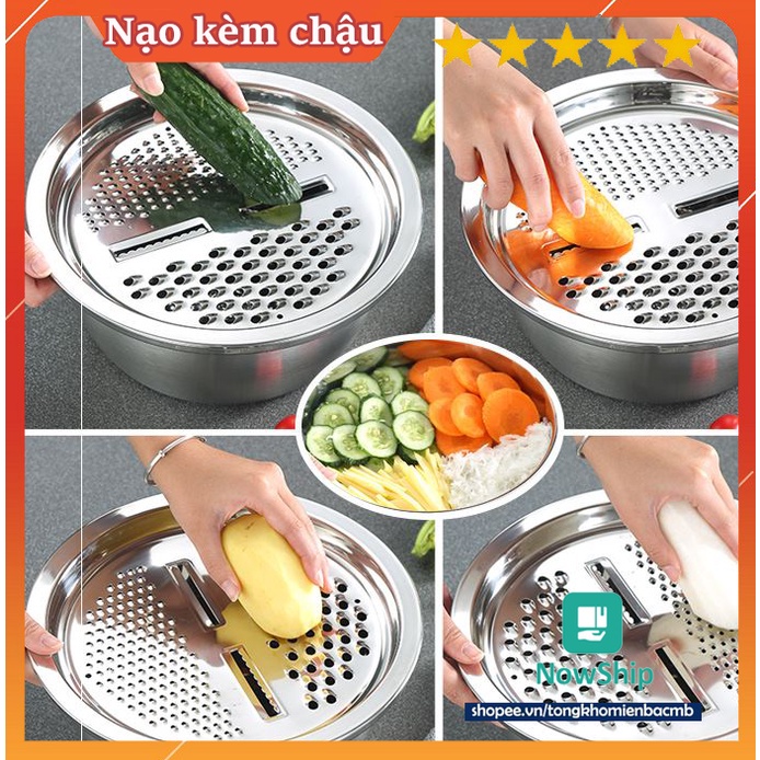 Bộ bao gồm : 01 Mặt nạo nhiều kiểu, 01 Rổ inox, 01 Chậu inox 100% cao cấp dày dặn