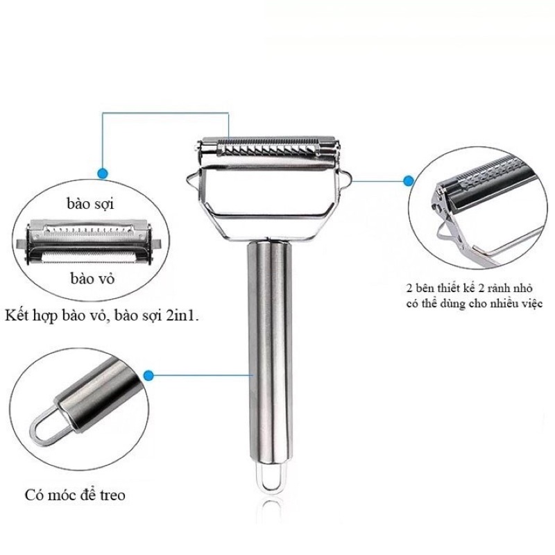 Nạo Rau Củ Inox Cao Cấp Đa Năng,Củ Quả,Bào Sợi,2in1