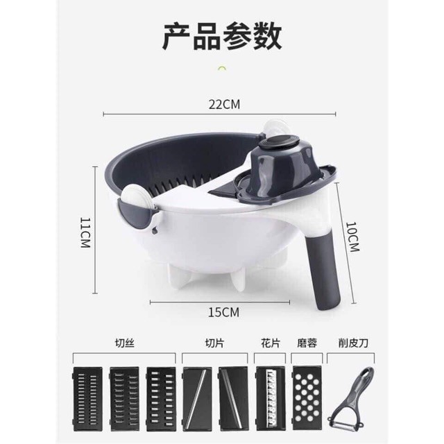 - Bộ dụng cụ nạo rau củ đa năng kèm rổ đựng 9 in 1 tiện dụng. Bạn có thể cắt rau và sau đó làm sạch chúng trực tiếp thông qua một thiết bị thoát nước.
