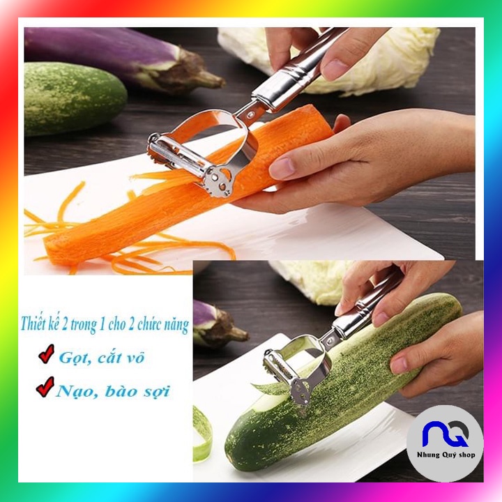 - Nạo Rau Củ Quả 2IN1 Bằng Inox Không Gỉ thiết kế 2 trong 1 cho hai chức năng, có thể là gọt vỏ hoặc dụng cụ bào sợi.