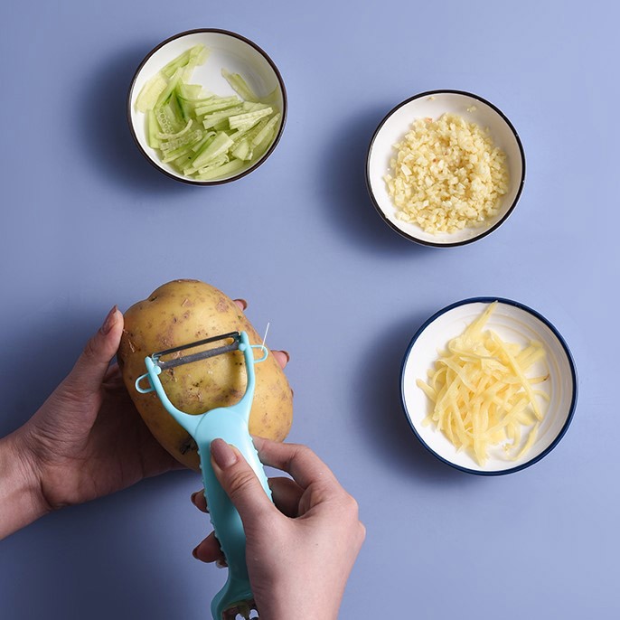 - Nạo rau củ quả đa năng có thể thay thế hoàn toàn các dụng cụ cắt thái rau củ quả thông thường.