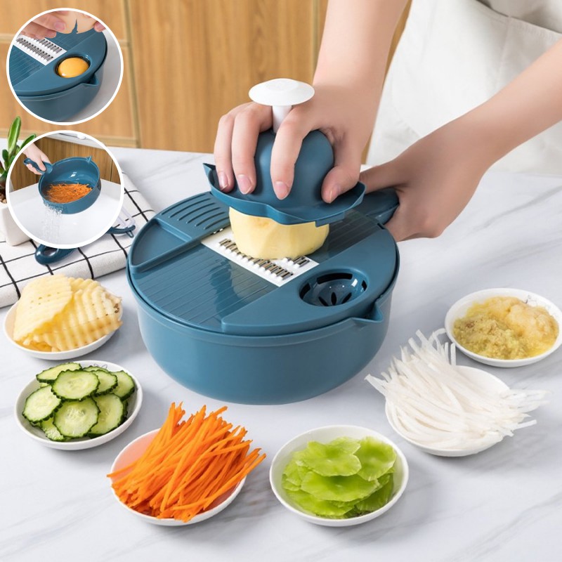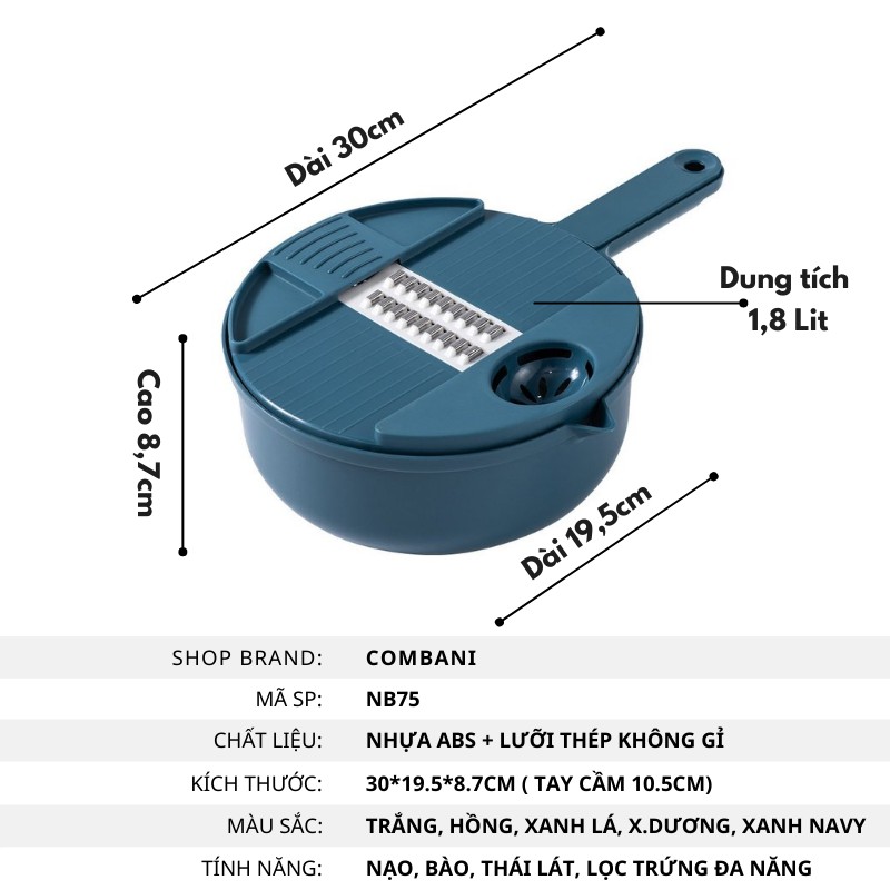 Với 11 chức năng: Thau, rổ, nghiền gừng tỏi, lược trứng, thái lát, bào sợi to nhỏ, bào khoanh.