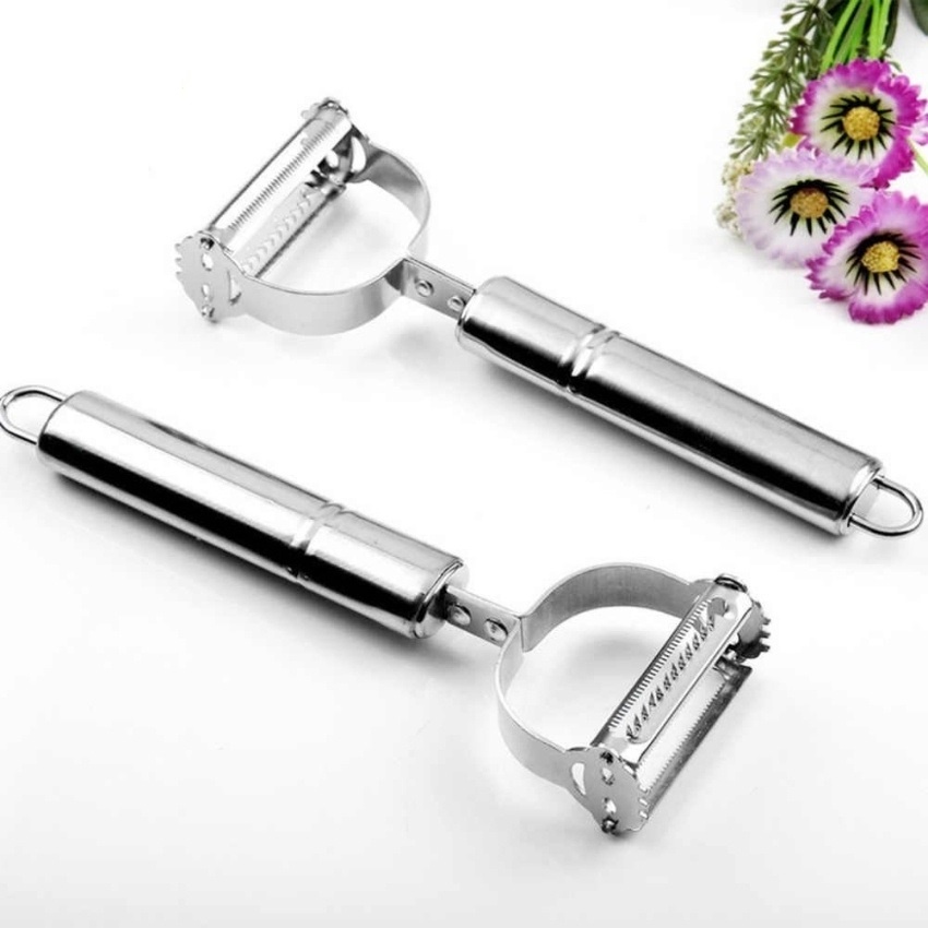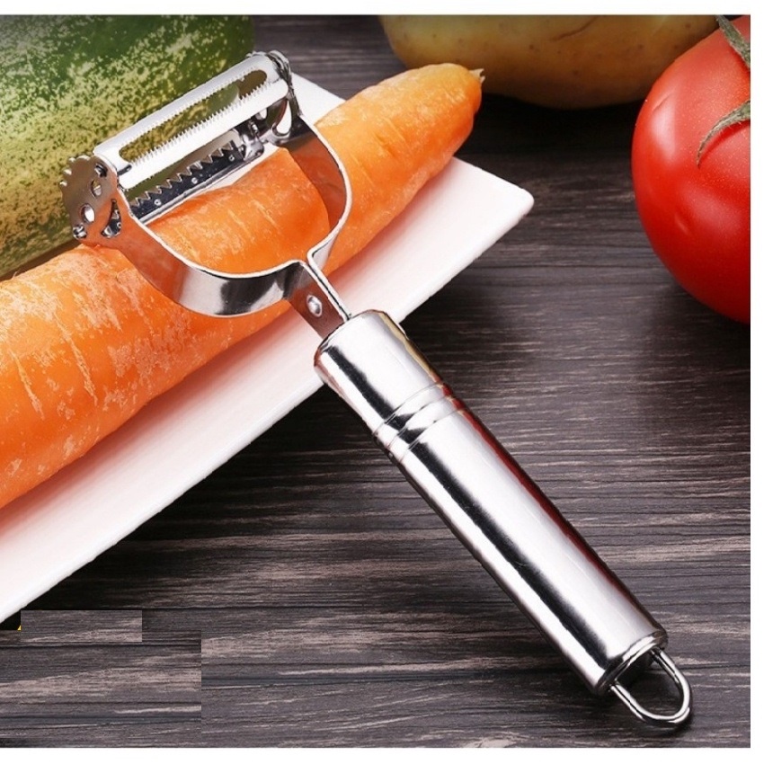 - Nạo gọt rau củ quả inox 2 đầu đa năng dành cho gia đình 1 đầu gọt vỏ - 1 đầu nạo sợi gọt sắc đa năng inox dùng siêu bền.