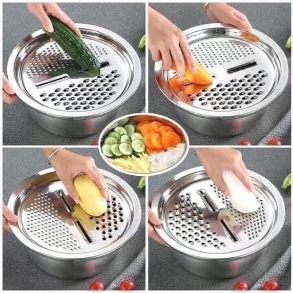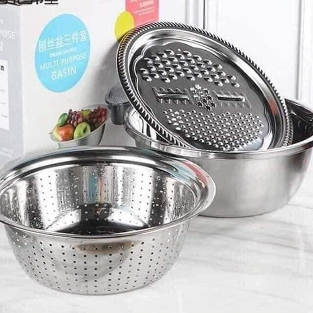 Bộ Nạo Rau Củ Quả Đa Năng Inox 3 in 1 - Bộ Rổ Nạo Củ Quả Kèm Chậu🥰Bộ Rổ, Chậu Kèm Nạo Rau Củ Quả Inox Đa Năng 3in1