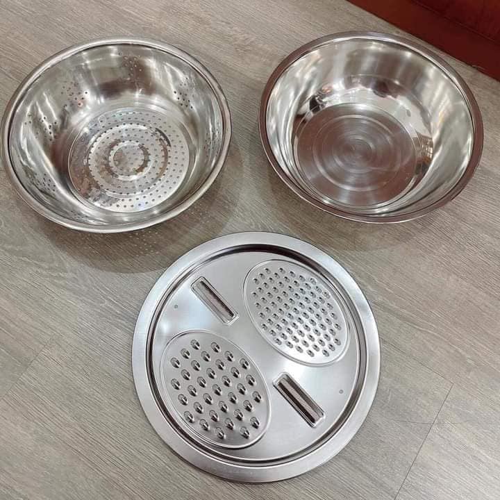 Nhà cửa & Đời sống > Dụng cụ nhà bếp > Bàn nạo, dụng cụ bào, cắt || Bộ Nạo Rau Củ Quả Đa Năng Inox 3 in 1 - Bộ Rổ Nạo Củ Quả Kèm Chậu.Còn hàng