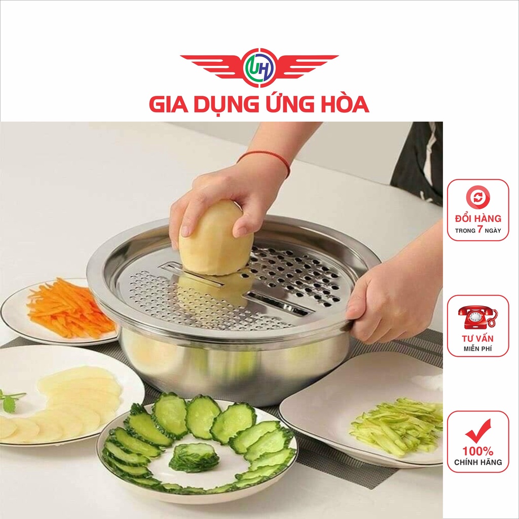Bộ Nạo Rau Củ Quả Đa Năng Inox 3 in 1 - Bộ Rổ Nạo Củ Quả Kèm Chậu- gia dụng
