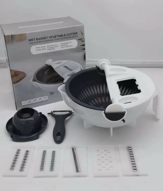 Bộ Dụng Cụ Thông Minh Nạo Rau - Củ - Quả Kèm Rổ 9 Trong 1 Đa Năng- Bộ Dụng Cụ Thông Minh Nạo Rau - Củ - Quả Kèm Rổ 9 Trong 1 Đa Năng thiết kế thông minh, nhỏ gọn và nhiều chức năng với cấu tạo gồm: lưỡi gọt (nạo) vỏ củ quả (củ khoai tây, bầu, bí, cà rốt, mướp, susu…); lưỡi bào (cắt) củ quả thành sợt nhỏ (Bào cà rốt, đu đủ, dừa…); rổ hứng rửa xoay 360 độ không lo bị rơi ra ngoài… giúp việc chế biến các món ăn thật đơn giản và dễ dàng và đẹp mắt.