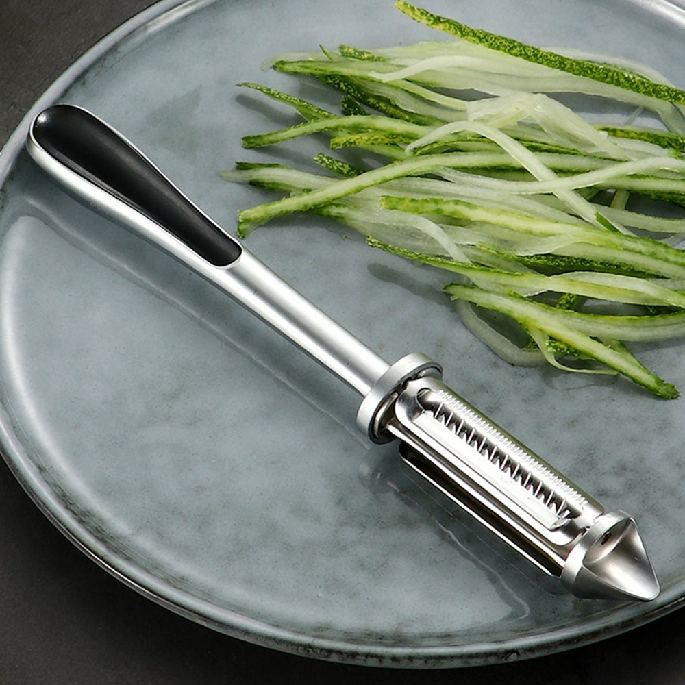 - Lưỡi dao dao Thép không rỉ, dạng răng cưa rất sắc bén giúp bạn dễ dàng thao tác gọt vỏ rau củ quả hoặc bào sợi rau củ quả chế biến các món ăn yêu thích Thật tuyệt vời đúng không nào,